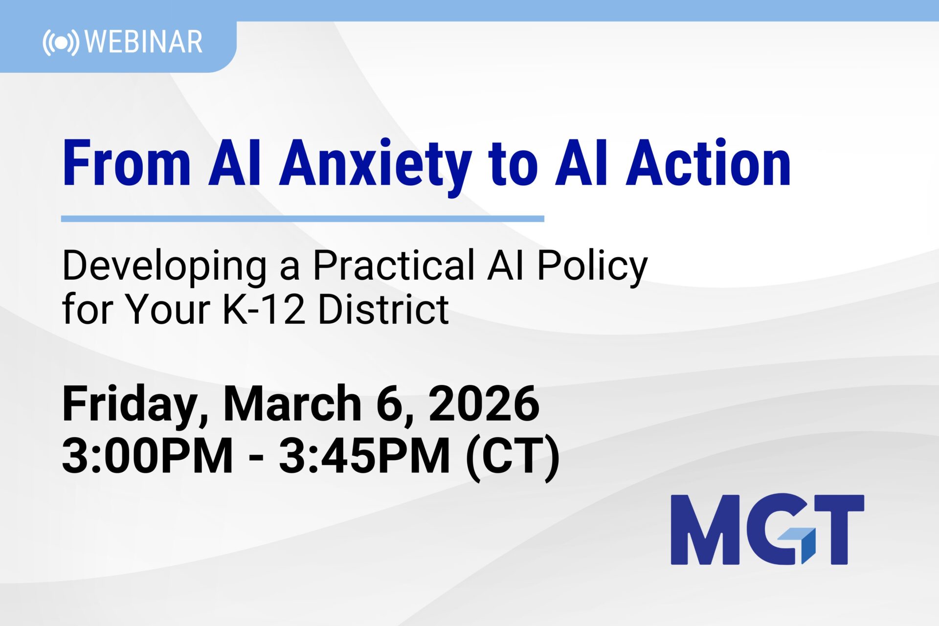 Join us for AI Anxiety to AI Action: Developing Practical AI Policy for Your District, on March 6th 3:00pm – 3:45pm CT for a focused, action-oriented webinar built specifically for district leaders.